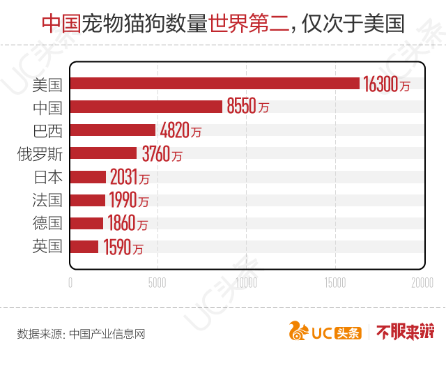 近年来,中国宠物猫狗的数量不断增加。不少中产家庭都把养猫养狗当做生活时尚。国家统计局2015年的报告披露,中国猫狗数量达到了8500万,居世界第二,仅次于美国。其中猫5800万,狗2740万。倘若把流浪猫狗也纳入的话,猫狗实际数量超过1亿以上。