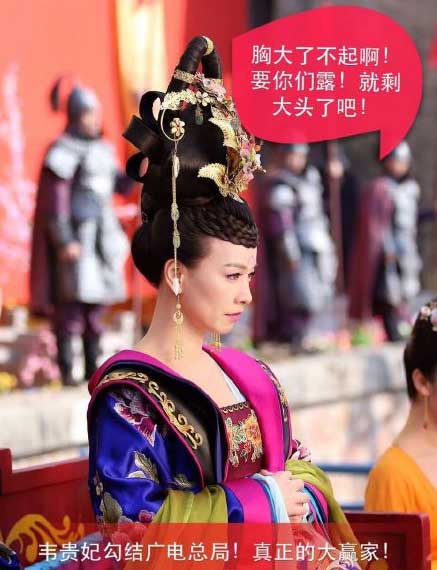 因为你懂的原因,武媚娘被剪成了大头贴剧,然后剧情就不按常理出牌了:先是李世民被武媚娘埋进了国家大澡堂!