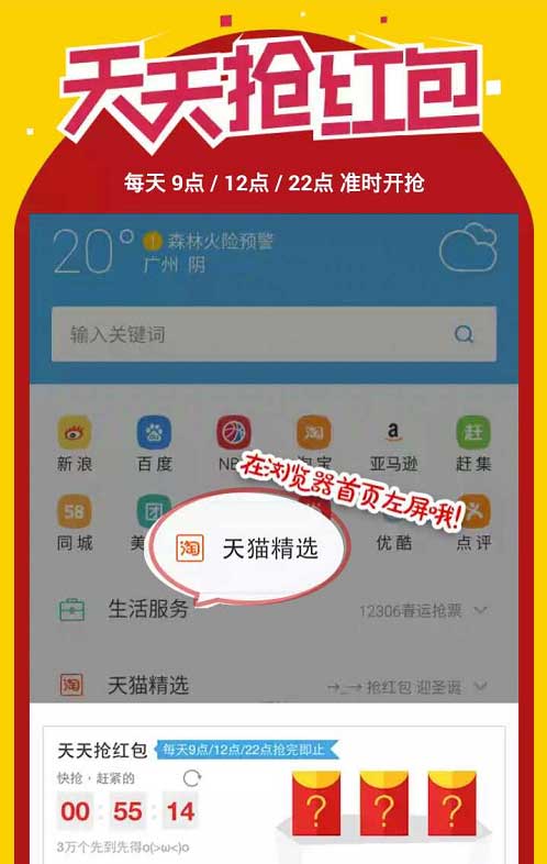不过中国人口这么多,光靠他们就能保证人人抢到红包?没关系,UC浏览器也给大家发红包。