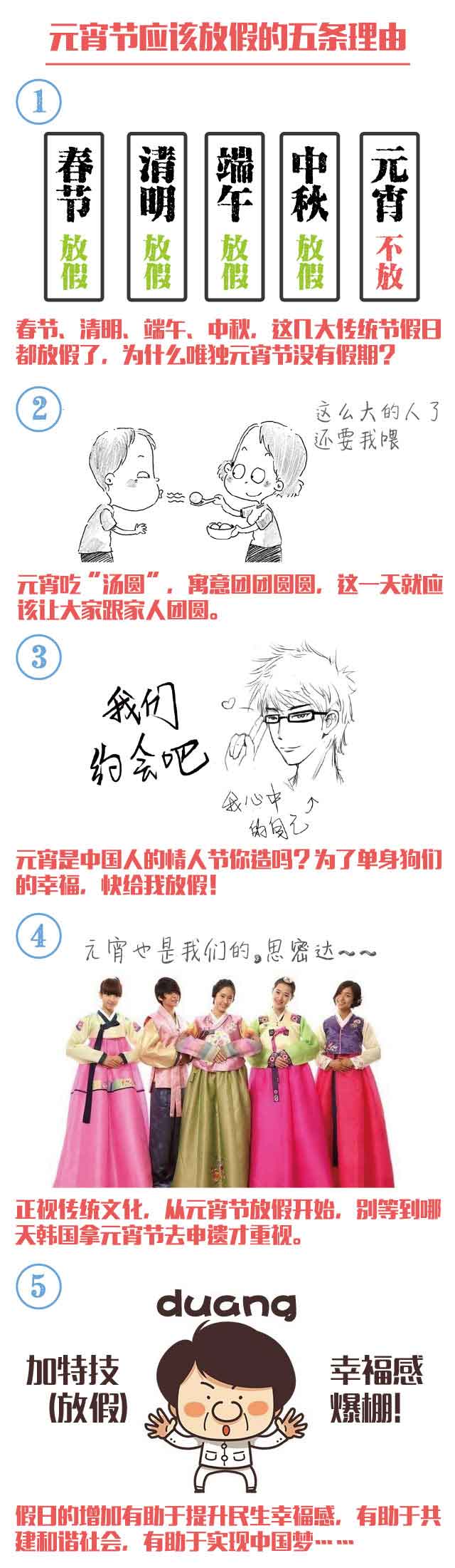 元宵到了,又赶上两会,于是有代表提交两会议案:元宵节应该放假。然后……