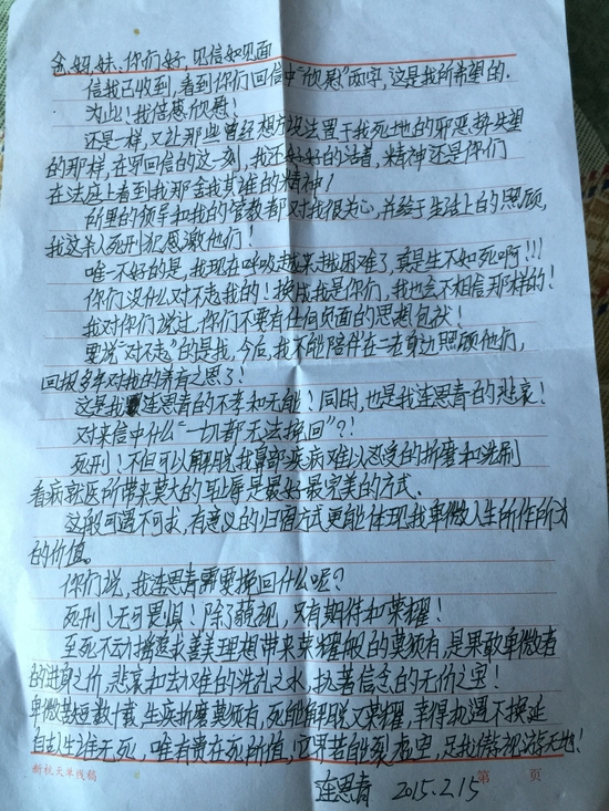 在与亲人的最后一次见面中,连恩青显得很从容,坦言他自己早已做好迎接法律制裁的准备,称如果有来生,自己将永不犯法做一个人人赞颂的好人。